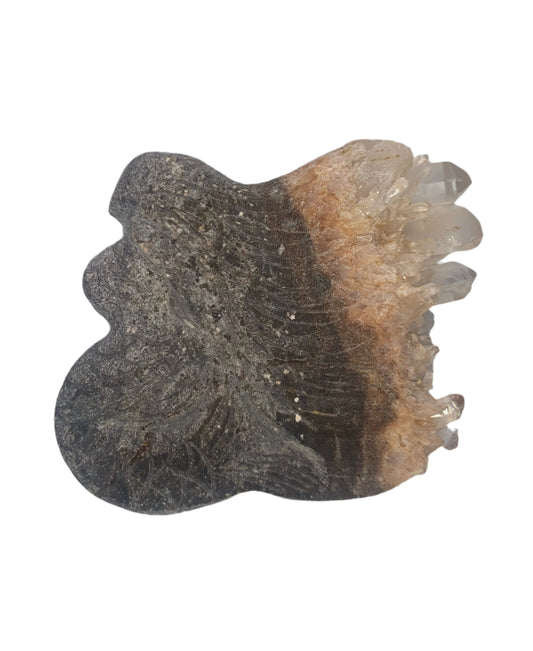 Quartz Cluster w Golden Healer Skull Carving on Matrix