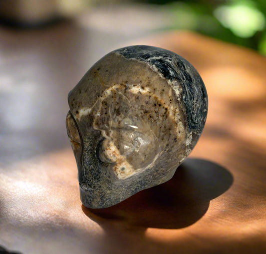 3" Chalcedony & Carnelian Skull w/ Druzy