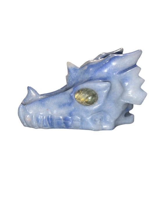 5" Blue Aventurine Dragon Skull w/ Labradorite Eyes