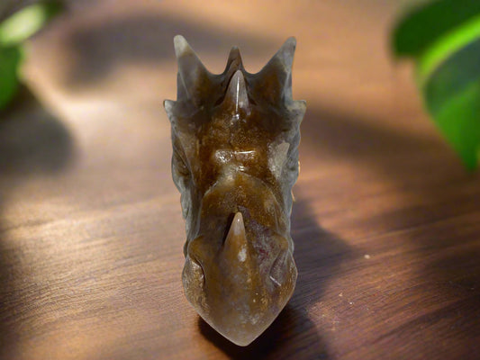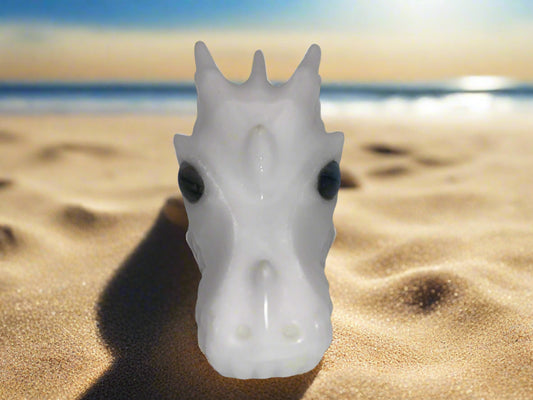 5.5" White Jade Dragon Skull w/ Labradorite Eyes