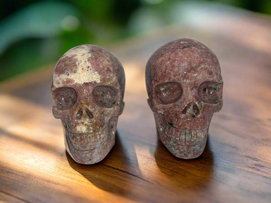 4.4" Pair Of Gatekeeper Peach Blossom Sesame Jasper Skulls