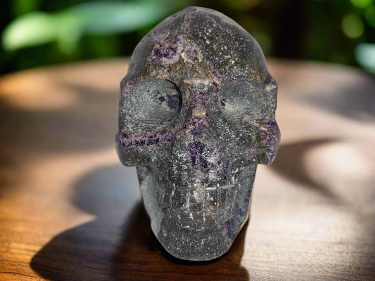 4.1" Purple Fluorite & Quartz Skull w/ Pyrite