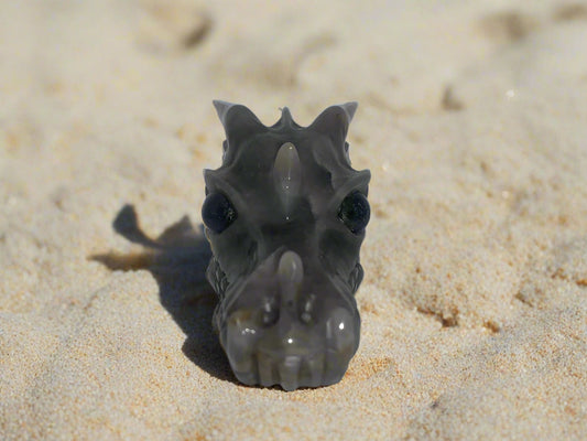 4.4" Gray Quartz Dragon w/ Labradorite Eyes