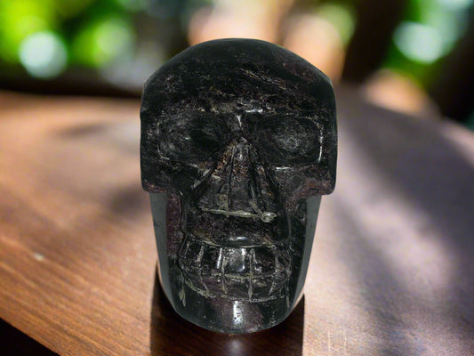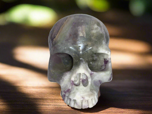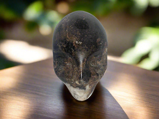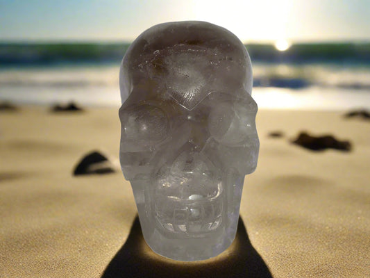 4.6" Brazilian Smoky & Clear Quartz Skull w/ Rainbows