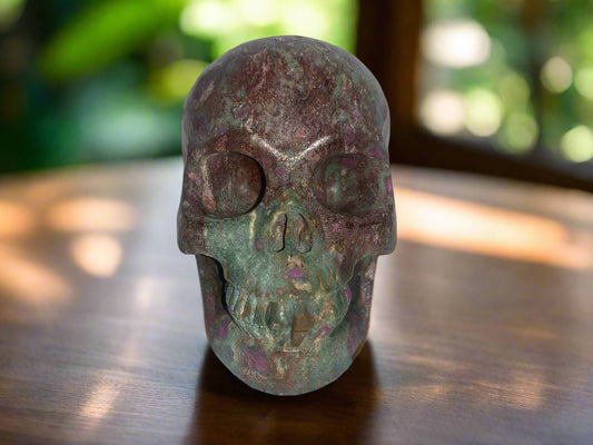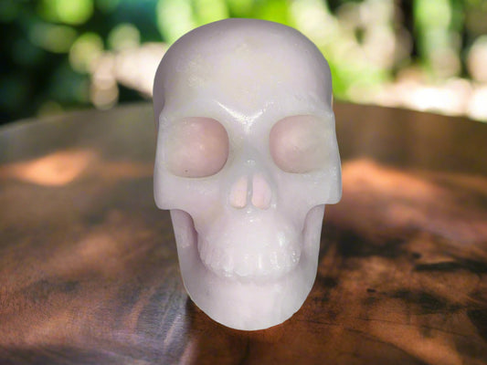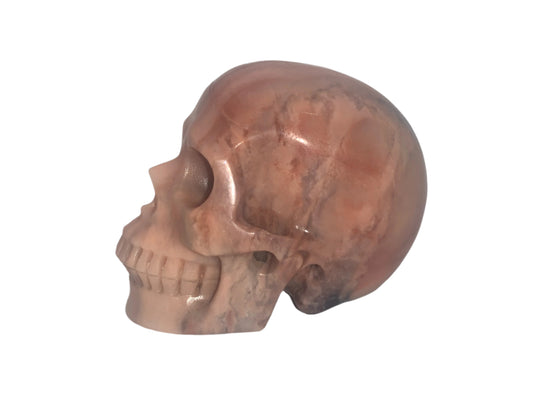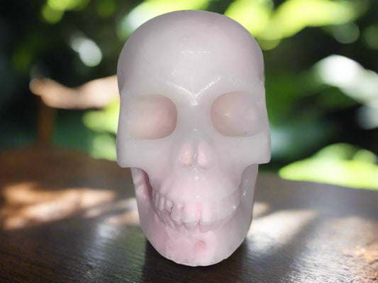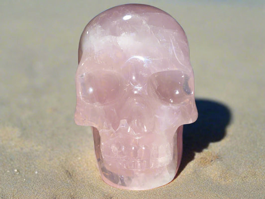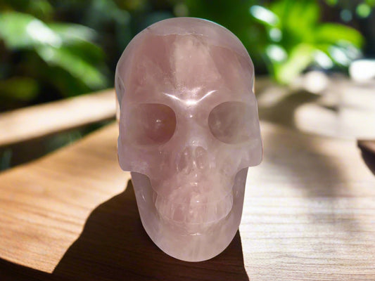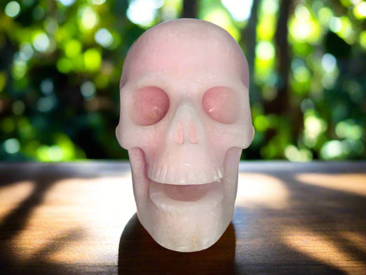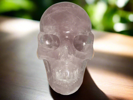 5.3" Self Healed Rose Quartz Skull w/ Rainbows
