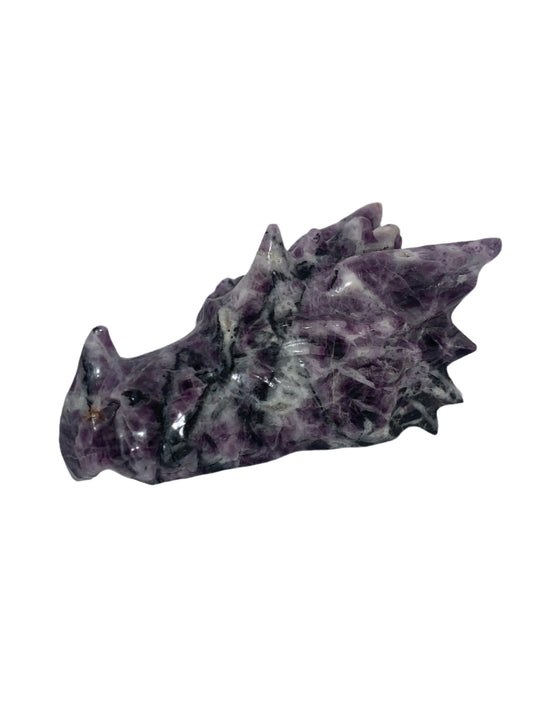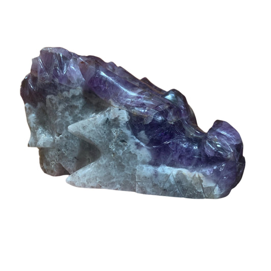 8.5" Alpine Amethyst & White Quartz Double Sided Dragon/Skull Carving