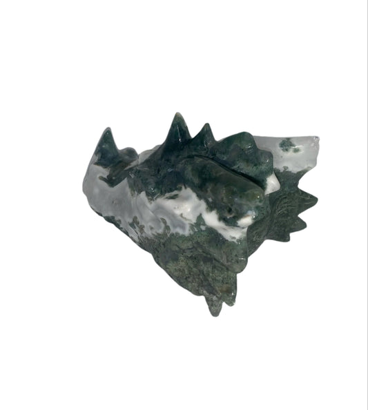 Tree Moss Agate Druzy 5.5" Dragon Skull